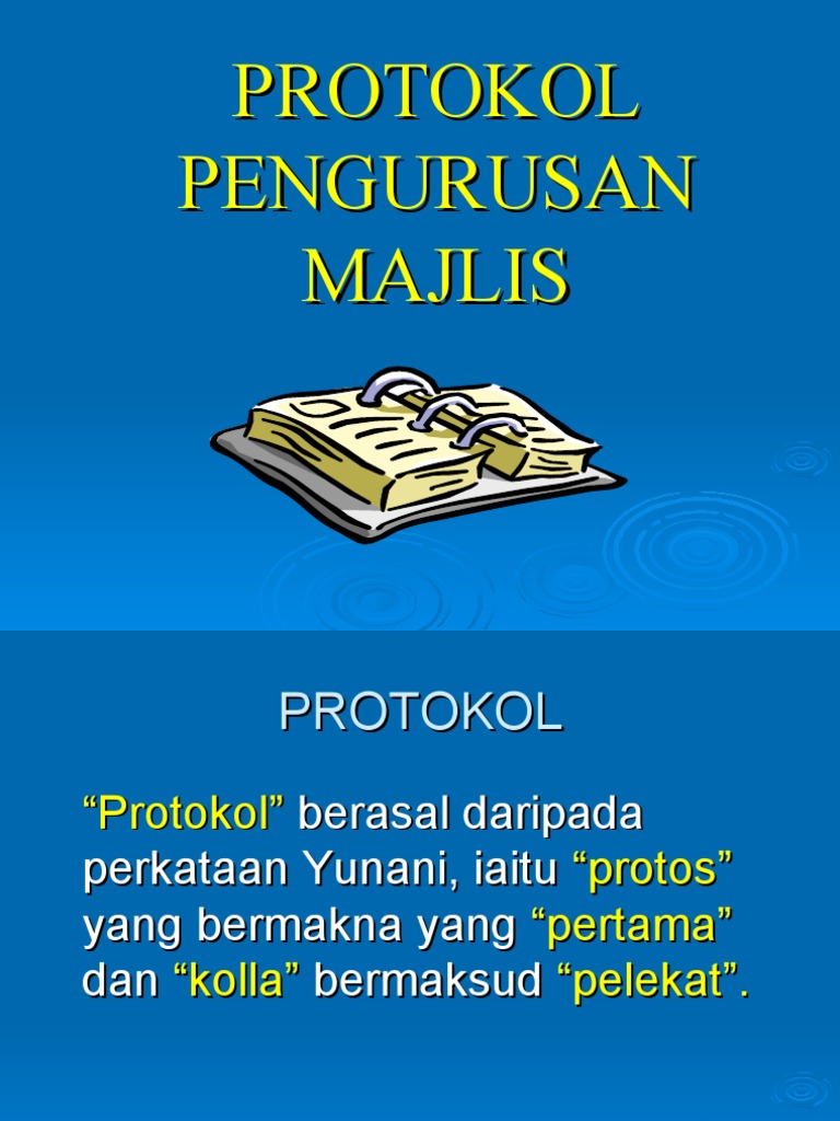 Protokol Dan Pengurusan Majlis / Bagi yang muslim, pengurusan jenazah tetap memperhatikan ketentuan agama yang berlaku serta menyesuaikan dengan petunjuk jixie mencari berita yang dekat dengan preferensi dan pilihan anda.. Pengurusan majlis dan protokol 1. Protokol merupakan tatasusila sosial dan tatacara bagi sesuatu majlis rasmi yang diwarisi sejak turun temurun. Mymemory, world's largest translation mengikut akta bangunan dan harta bersama (penyenggaraan dan pengurusan) 2007 (akta 663), mesyuarat terpaksa ditangguhkan selama 30. Aplikasi protokoldalam pengurusandan pelaksanaan majlis di sekolah 3. Jawatankuasa 2 biasanya majlis yang diadakan di tempat yang terbuka dan juga di tempat ibadat penggunaan protokol adalah terhad dan adakalanya terpaksa diubahsuai.
