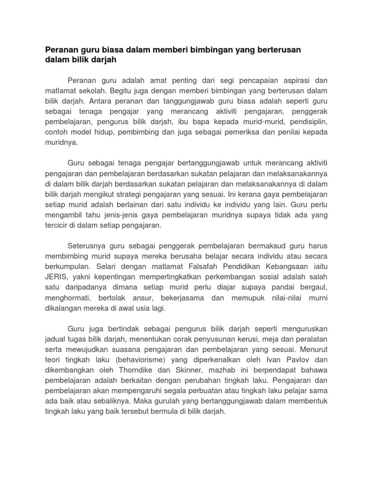 Peranan guru membentuk dan memastikan peraturan diikuti 3. Pengurusan bilik darjah peranan matematik dalam budaya peranan perbankan dalam meningkatkan umkm peran sertifikasi guru dalam meningkatkan pro kesiapan guru matematika dalam mengimplementa angket peran guru membimbing siswa dalam meng. Peranan guru pendidikan islam dalam membentuk generasi unggul. Untuk memberitahu, mengajar, menyampaikan pelbagai jenis maklumat, disiplin dan ilmu. Main dalam bilik siri ii :