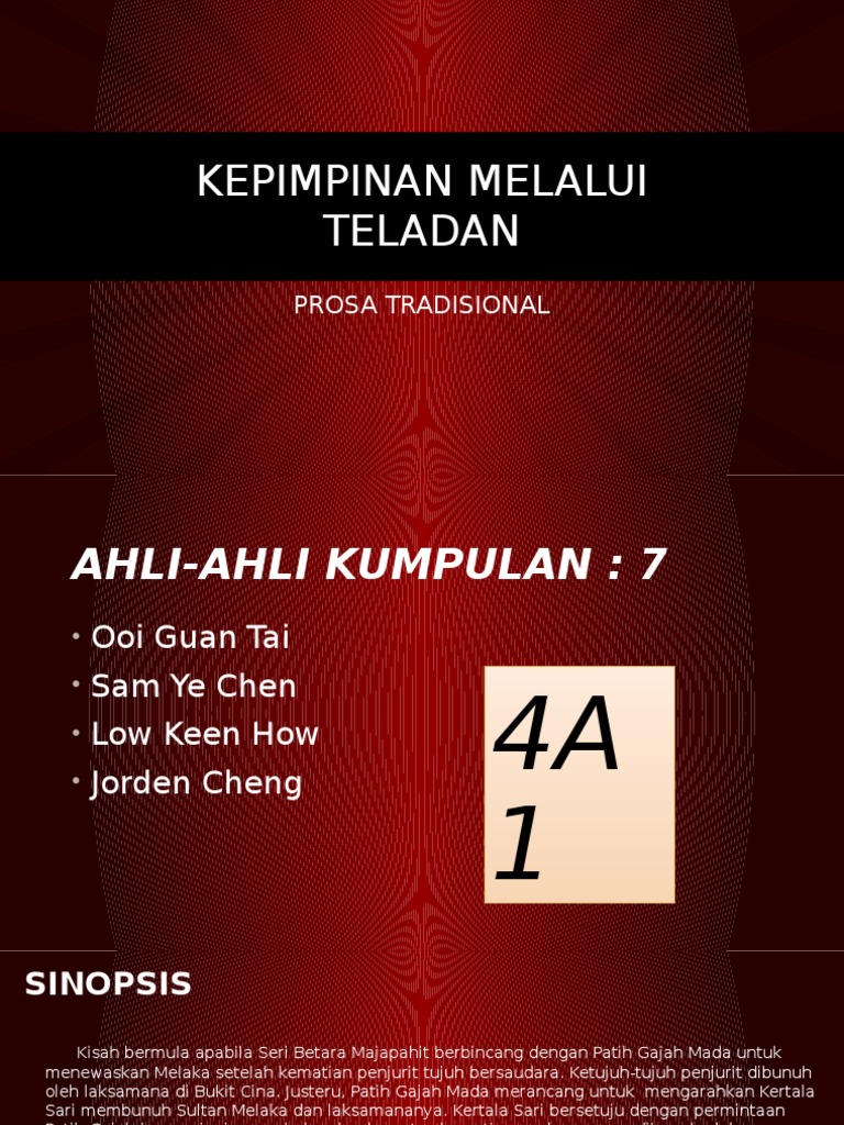 Pembelajaran Terpimpin Hari Ke 8 Bahasa Melayu Pembelajaran Terpimpin Ting 4 Sesi 1 8 00 10 30pagi 1 Baca Dan Fahamkan Slide Komsas Kepimpinan Melalui Teladan Kemudian Buat Sinopsis Urutan Peristiwa Ringkas Cerita Tersebut Di Atas Test Pad A4 Sama from lookaside.fbsbx.com Kisah bermula apabila seri betara majapahit berbincang dengan patih gajah mada untuk menewaskan melaka setelah kematian penjurit tujuh bersaudara. Kisah bermula apabila seri betara majapahit berbincang dengan patih gajah mada untuk menewaskan melaka setelah kematian penjurit tujuh bersaudara. John adair, pofesor kajian kepemimpinan dari university of surrey, menulis buku kepemimimpinan muhammad. Seri betara majapahit berbincang dengan patih gajah mada untuk menewaskan melaka setelah kematian penjurit tujuh bersaudara yang dibunuh oleh laksamana di bukit cina. Dasar kepimpinan melalui teladan objektif 1. Melalui kepemimpinan strategis, seharusnya tiap orang di perusahaan punya peluang untuk menyumbangkan ide dan gagasannya. Analisis lengkap kepimpinan melalui teladan. Tanpa adanya kepemimpinan tidak mugkin suatu organisasi dapat berjalan sesuai dengan yang direncanakan.